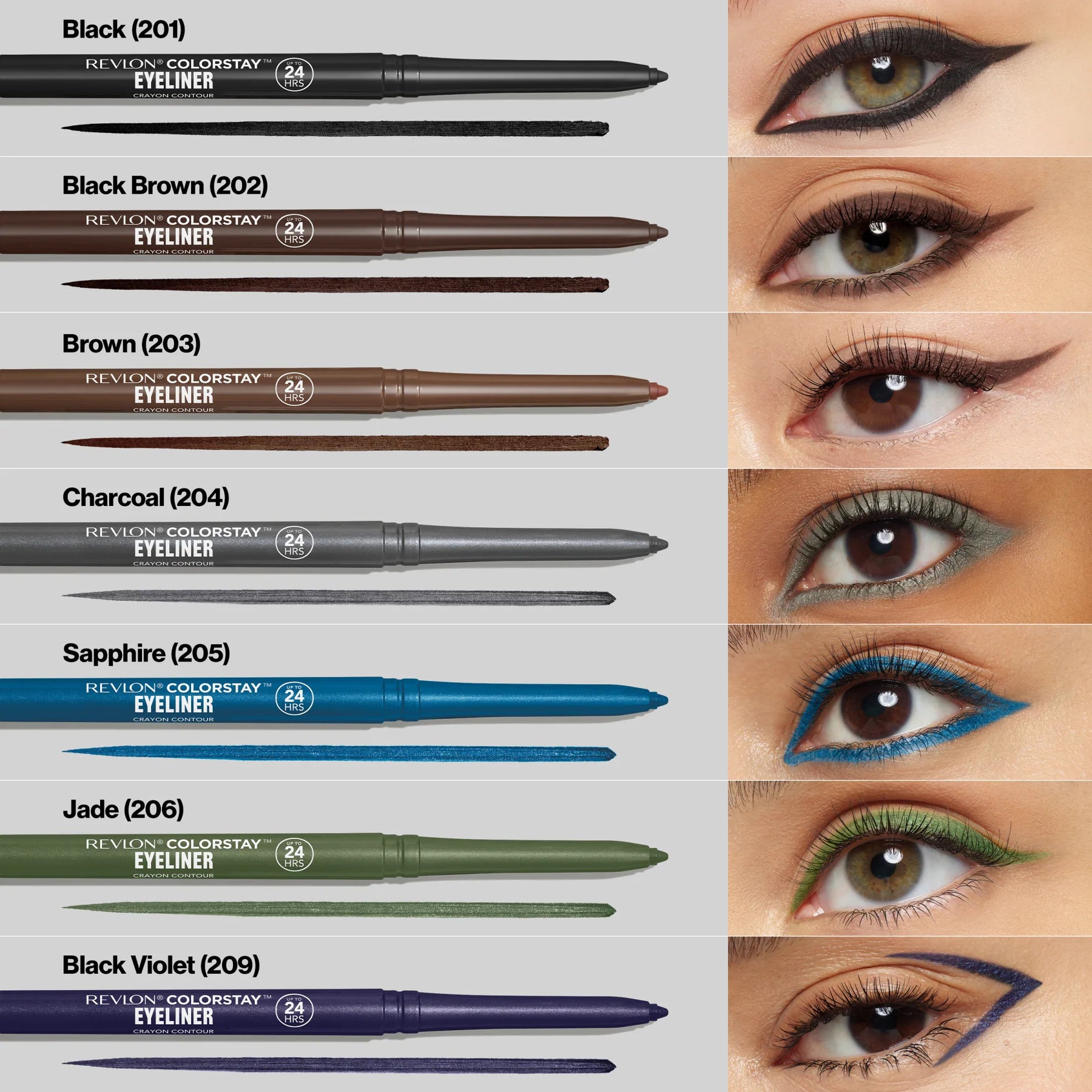 FÁCIL APLICACIÓN: Se desliza, creando líneas intensamente definidas que pueden ir de sutiles a dramáticas. Incluye un sacapuntas integrado para una punta perfecta y un difuminador para difuminar.