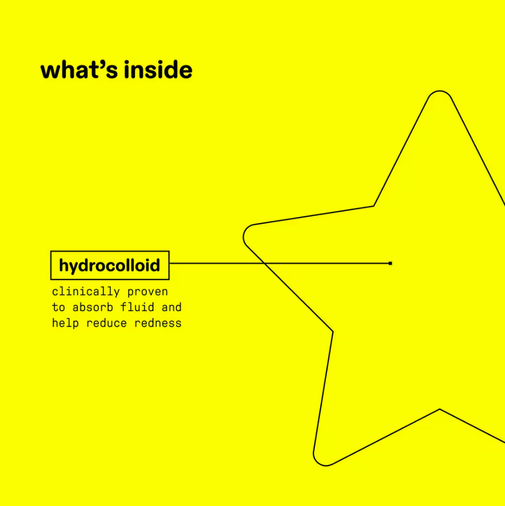 FÓRMULA GALARDONADA: Hydro-Stars está hecho con hidrocoloide, un material clínicamente probado que ayuda a absorber líquidos, reducir el enrojecimiento y reducir las imperfecciones, a la vez que te da una sensación de bienestar.