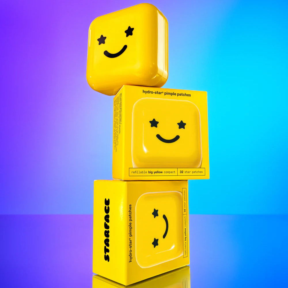 Diviértete reduciendo las imperfecciones y siéntete guapa con los 32 parches Hydro-Star® clásicos para granos en un compacto amarillo con efecto espejo.